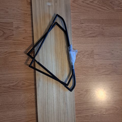 Annetaan tarpeettomana hyväkuntoinen Ikean Lack seinähylly. Ruuvit eivät ole mukana, mutta kiinnike metalli löytyy (kuvassa).