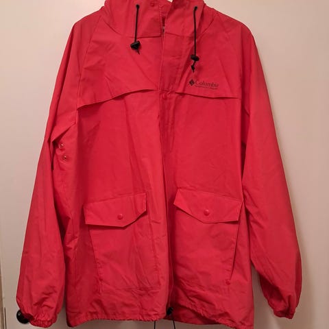 Käytännössä uusi sadetakki. Koko on XL. Mielestäni koko on enempi L
