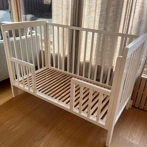 Myydään lasten sänky patjalla lisäksi patjan suoja ja lakana.