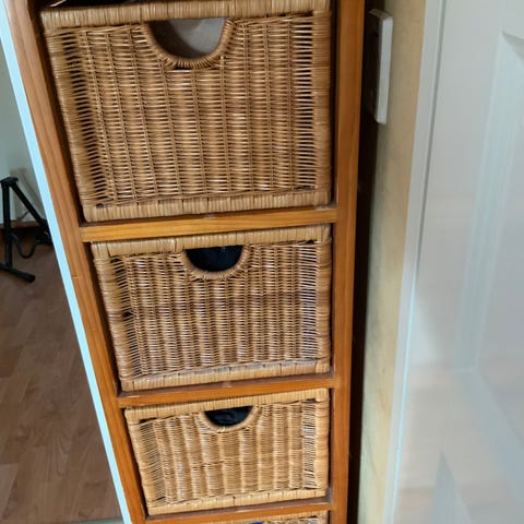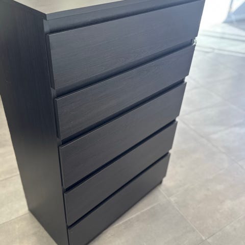 Myydään vankkaa tekoa oleva lipasto. Muuten hyväkuntoinen, mutta alimmassa laatikossa kosmeettinen häiriö. Väri vastaa kutakuinkin kuvissa olevaa.