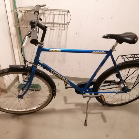 polkupyörä 26” renkailla. Rungossa on puna väritys ja suoramallinen ohjaustanko. Pyörässä on lokasuojat takana ja satula on säädettävissä pituuden mukaan. Soveltuu noin 26 tuuman pyörää käyttävälle arkiajoon ja vapaa-ajan pyöräilyyn. Takapyörän sisärenkaat on vaihdettava.