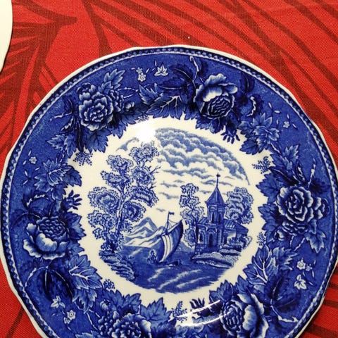 Hienoja piippuleimattuja Maisema lautasia . Neljä syvää ja kolme matalaa lautasta.