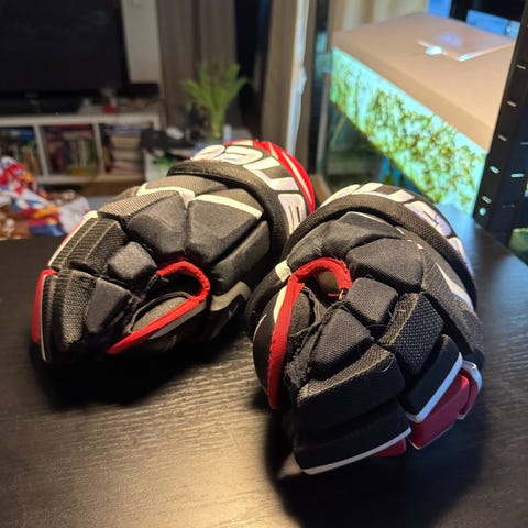 Myydään bauer 2s pro jääkiekkohanskat. Koko 14. Vasen kämmen paikattu ammattilaisella. Alla vain pieni reikä, jos haluaa ottaa paikan pois. Muuten ehjät ja erittäin siistit hanskat.