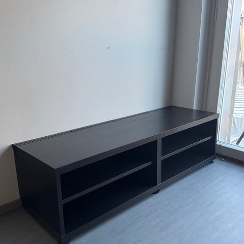 Myydään kuvan Ikean valkoinen Bestå tv-taso. Siisti ja hyväkuntoinen. Mitat 120x40x38. Alla koloset johtoja varten.