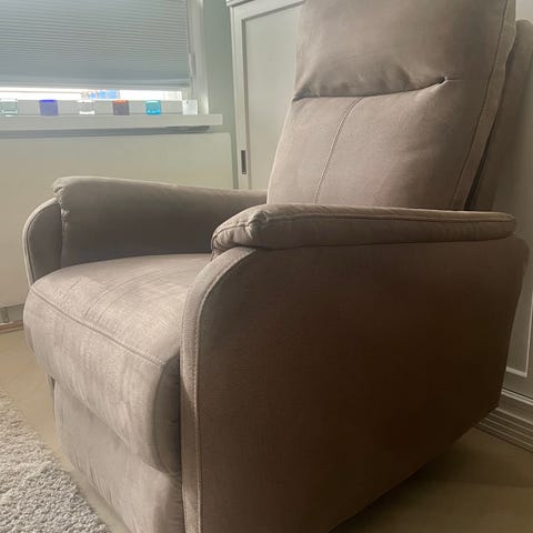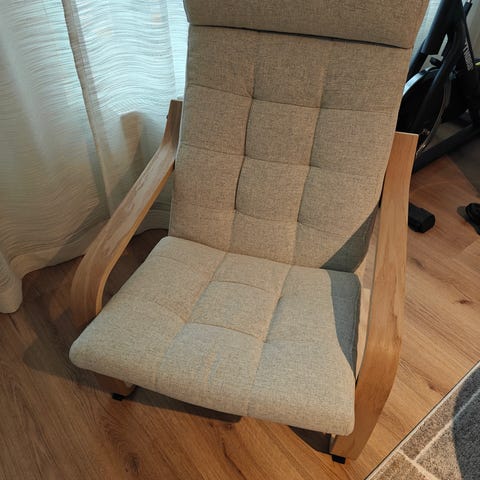 Noin vuoden vanha lepotuoli. Sen säädettävä mekanismi tarjoaa mukavan istuma-asennon olohuoneen rentoihin hetkiin. Siisti ja hyväkuntoinen.