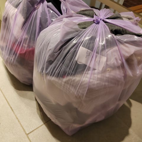 Vartalonmyötäisiä vaatteita. Kassi sisältää pari takkia kevääseen. Siistikuntoista tavaraa!