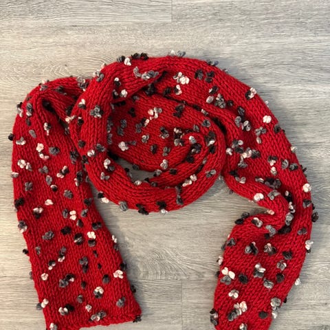 Käytetty käsinvärjättyä neulelankaa (Abelknit-wolle, Saksa). Koostumus: 75% villa, 25g polyamiidi. 100g/420m.