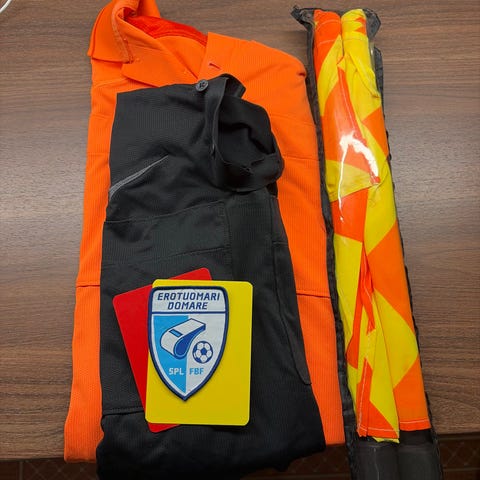 Jalkapalloerotuomarin Niken varustepaketti.