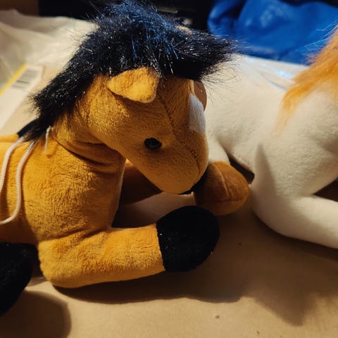 Siistejä pehmohevosia 5 kpl ja hevosviltti. Yht. 15e