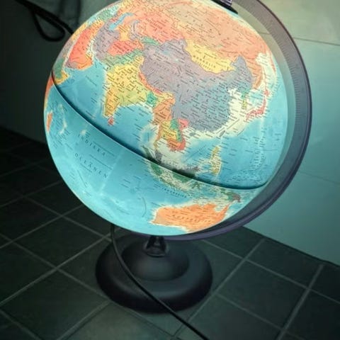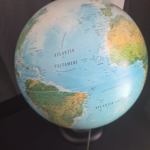 Valaistu karttapallo / maapallolamppu. Clas Ohlson. Ø 30 cm. 1,6 metrin johto ja virtakytkin