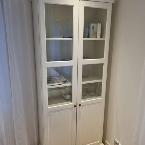 Tosi hyvässä kunnossa valkoinen lasi vitriini.