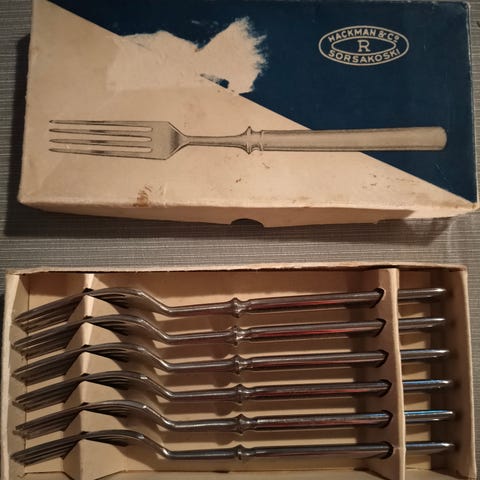 Myynnissä: 11 haarukkaa, 6 veistä ja lusikoita neljässä eri koossa (1-6kpl per lusikka)