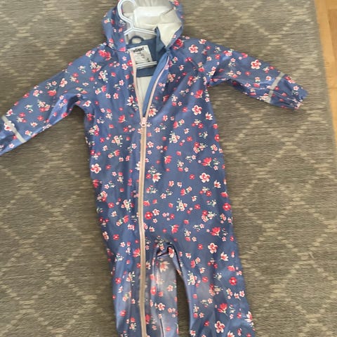 Vuorellinen kurahaalari. Renksut rikki, napit paikoillaan. Pepussa kulumaa ja tummentumaa. Heijastin nauhoista osa repsottaa. Reikä toisessa lahkeessa.