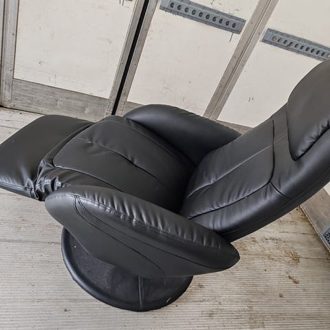 Hyväkuntoinen nojatuoli kaatuvalla selkänojalla/jalkatuella. Vasemmassa käsinojassa pientä kulumaa ompeleessa, mutta tämä ei ole kovin näkyvää ja muuten tuoli on kaikin puoli erinomaisessa kunnossa. Myyn ensimmäiselle hakijalle jyväskylän keskustasta.
