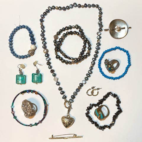 Korusetti, johon kuuluu useita erimittaisia kaulakoruja ja useita pareja korvakoruja. Kaulakoruissa on erilaisia helmiä ja osia, kuten ketjuja, putkihelmiä ja pyöreitä helmiä monivärisissä sävyissä. Yhdessä kaulakorussa on pingviiniriipus, toisissa koristeellisia helmiyhdistelmiä. Korvakoruissa on koukkukiinnitys ja niissä on erilaisia puuhelmi- ja rengasosia. Sopii käytettäväksi arki- ja juhla-asujen kanssa tai askartelumateriaaliksi korujen tuunaamiseen.