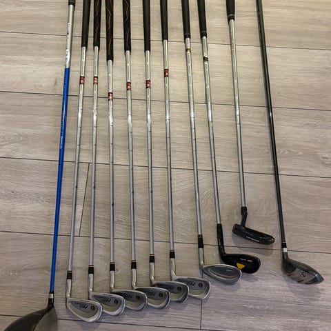 Koko setti on regular varsilla. Mailat ovat ikäänsä nähden mielestäni kohtalaisessa kunnossa. (Itse olen pelannut kaksi edellistä kesää tällä setillä)