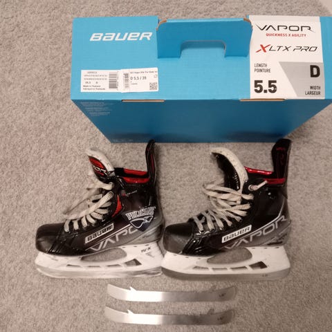 Kunto: Hyvä käytetty kunto. Pinnallisia käytön jälkiä ja hankaumia löytyy (katso kuvat), mutta luistimet ovat rakenteellisesti täysin ehjät ja valmiit peliin.