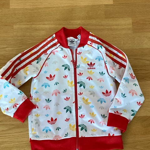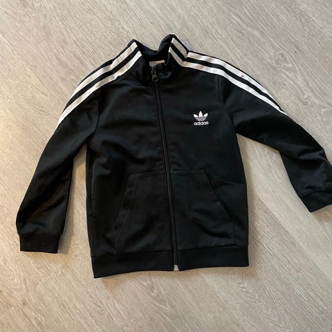 Adidas verkkapuku. Siisti käytetty kunto. Toisessa polvessa pieni vekki, muttei reikää. Mielestäni ollut hyvälaatuinen, eikä paljoa nukkaakaan. Koko 110, mutta ollut meillä käytössä jo 104 koosta alkaen.