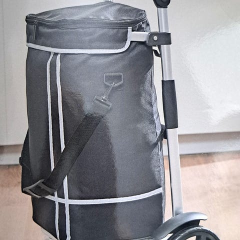 Uudenveroinen ostoskärry josta tilavan kassin saa helposti irti tarranauhoilla. Kassin tilavuus 47 l. Laukussa on vetokärryrunko, kaksi pyörää ja säädettävä vetokahva, mikä helpottaa kuljettamista. Päällinen on kangasta, jossa on raitakuvio. Laukussa on suuri päätasku läpällä sekä etutasku vetoketjulla.