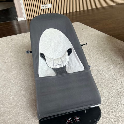 Babybjörn sitteri kelta-harmaalla kankaalla.