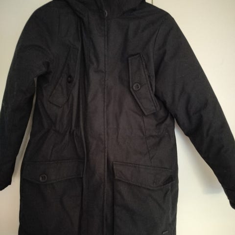 Muuten hyvänkuntoinen talviparka, ainoastaan vetoketjun sisäpuolella on oieni repeämä, tiedustelin korjausompelimodta, että sen saa korjattua 20€:lla.