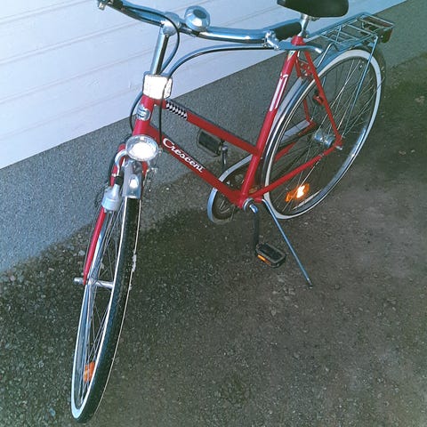 Kuvan polkupyörä myynnissä. Kolmevaihteinen, jalkajarru. Juuri huollettu, renkaissa pysyy hyvin ilmat. Alkuperäinen lukko ja avain löytyy.