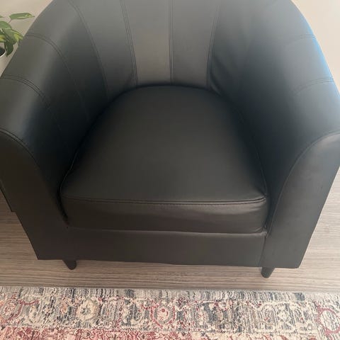 Myydään kaksi mustaa nojatuolia, keinonahkaa, hyvässä kunnossa. Ostettu Jyskistä.