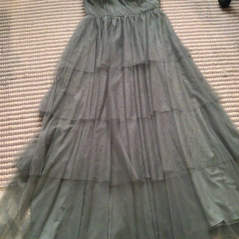 YAS uusi tyllimekko Koko S. Jaden vihreä, monikerroksinen tyllimekko, jossa yläosa on laskostettua tylliä ja alaosa koostuu useista kerroksista.