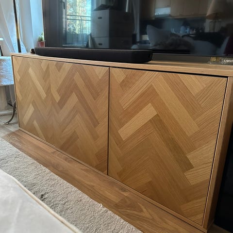 Hyväkuntoinen Farsund TV-taso, leveys 160cm, korkeus 55 cm, syvyys 40 cm.