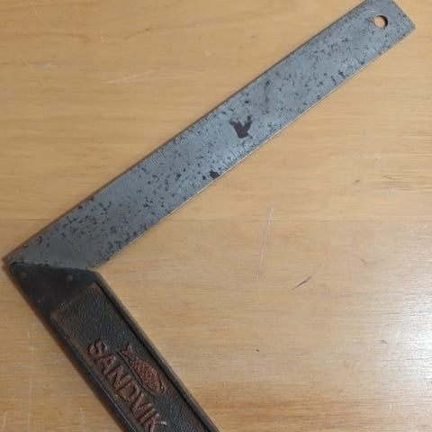 Vanha ruotsalainen suorakulma. Mitat sentteinä. Ajan patinaa, mutta toimiva on.