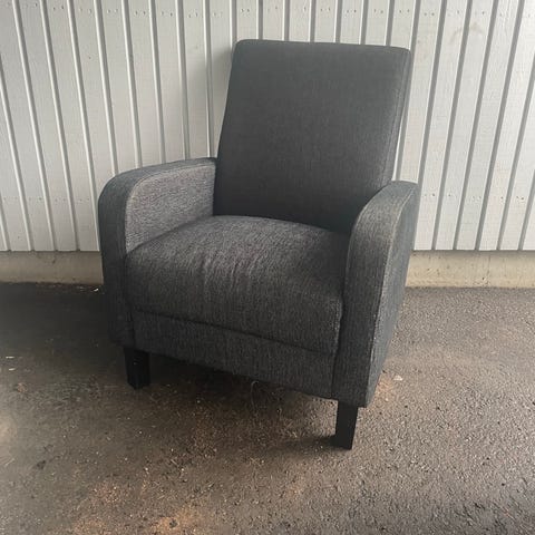 Mukavan istuttava. Pientä kulumaa tuolin taka osassa kulumat ei näkyviä
