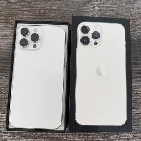 Apple iPhone 13 Pro Max 256 GB. Väri kulta. Paketissa puhelin ja USB‑C–Lightning‑kaapeli.