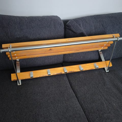 Upea, korkealaatuinen käsityönä valmistettu lattialle sijoittuva naulakko, jonka juuret ovat 1900-luvun puolivälissä. Tämä kappale erottuu hienostuneesta torciglione-työstöstä (Salomonin pylväs) keskiorungossa, massiivipuusta ja lämpimän pähkinänsävyisellä viimeistelyllä, joka korostaa sen luonnollisia syykuvioita.Yläosa on kruunattu voluuptoihin viistoilluilla metallikoukulla, jotka muistuttavat Liberty-/Biedermeier-tyylejä, tarjoten runsaasti tukipisteitä sekä hattuille että päällystakeille. Keskivaiheilla on lisäksi puisia nuppeja, jotka sopivat erinomaisesti laukkuihin tai asusteisiin.Pyöreä, raskas ja koristeellinen pohja takaa erinomaisen vakauden myös täyden kuorman kanssa. Ajaton sisustuselementti, täydellinen eteisiin, virallisiin työtiloihin tai klassiseen makuuhuonekalustoon.