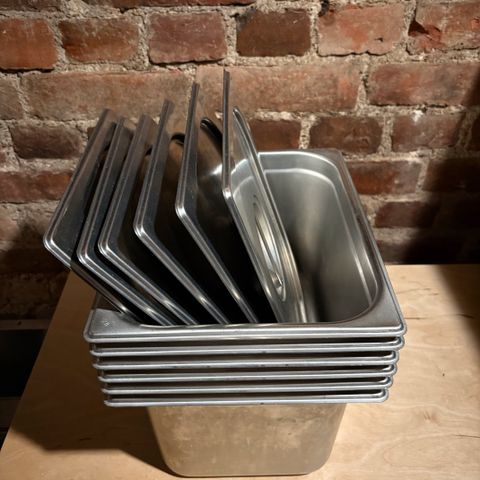 Tarjoilulämmitin (6 kpl runkoja) ja useita erikokoisia GN astioita sekä kansia. Astiat ovat rosteria ja soveltuvat ravintolan keittiö käyttöön. Lämmitin on kannellinen ja jalallinen (ei sähkö). Kunto on ok, olleet varastossa, käytön jälkiä ja pientä reunavääntymää on. Alkuun pesu. Ei merkittäviä vaurioita.
