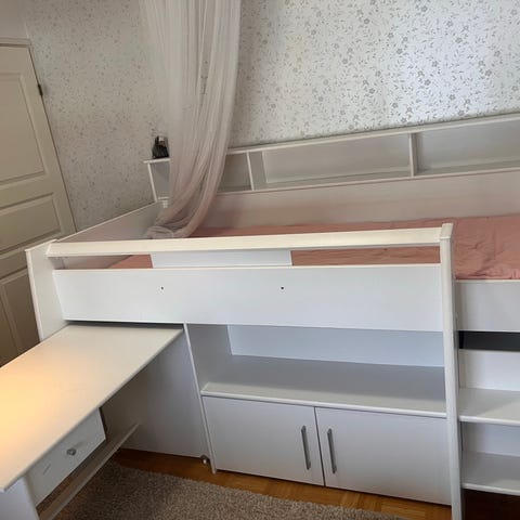 Valkoinen parvisänky. Vuodekoko 200x80cm (sänky 205cmx85cm)