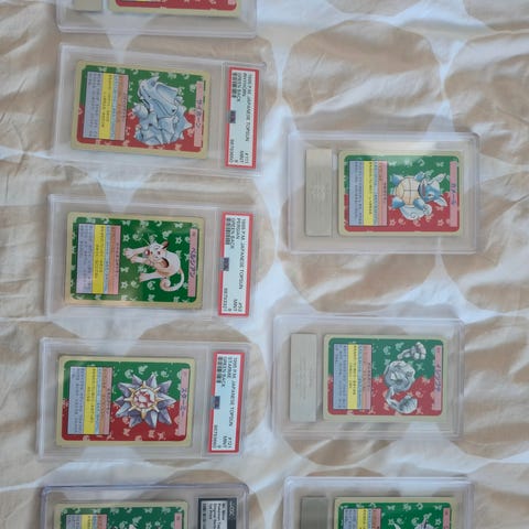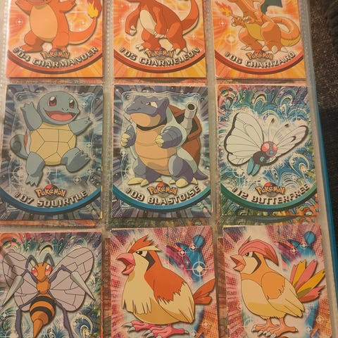 Myydään vanhoja pokemon kortteja, myydään ensisijaisesti koko setti kerrallaan. Kuvien korttien lisäksi löytyy paljon energia kortteja. Kaikki kortit on erittäin hyvässä kunnossa, näillä ei ole ikinä pelattu, vaan käytännössä suoraan pakan avaamisen jälkeen laitettu muovitaskuun kansioon. Kaikki kortit on vanhoja, 90/2000 taitteessa hankittuja. Alla tarkempi listaus kaikista korteista, ja jokaisesta on mahdollista saada tarkempia kuvia niin halutessaan. Vain kahdessa kortissa on jälkiä, jotka ovat kuvateksteihin merkattu. Joitain ns. tavallisia kortteja on useampia kappaleita. Löytyy myös jonkin verran Topps-keräily kortteja. Hinnasta voi esittää oman näkemyksensä, ja tarjouksia kuunnellaan.