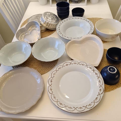 Tarjoiluastiat ja silmälasikotelo. Jotain metallia. Hopeeta tai alpakkaa tai jotain? Ajan patinaa joka varmaan lähtee kun kiillottelee. Koko setti edullisesti.