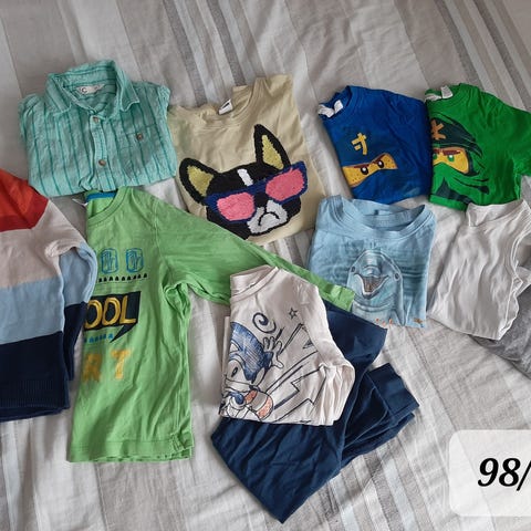 Iso vaatepaketti pojalle, kokoja 98, 98/104 ja 104 cm. Kunto vaihtelee lähes käyttämättömästä kohtalaiseen. Hyviä perusvaatteita seuraavalle.