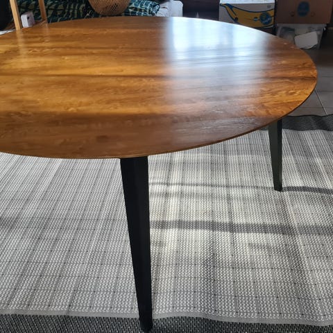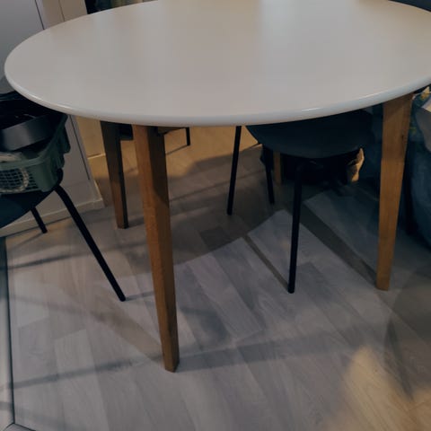 Myydään pyöreä keittiönpöytä ja neljä kappaletta mustia tukevia tuoleja. Kaikissa pientä käytön jälkeä. 70euroa/tarjous