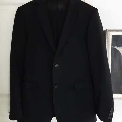 Dressman villa-polyester puku, B hoikka noin 185 cm pituiselle.