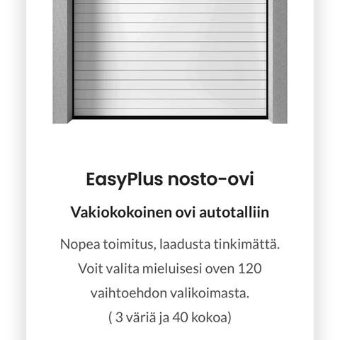 Nosto-oven sähkömoottori ja ohjainyksikkö sekä muu tarvittava. Kauko-ohjaus yksikkö puuttuu. Ollut 6m korkeassa nosto-ovessa noin vuoden päivät käytössä joten melko vahva moottori.