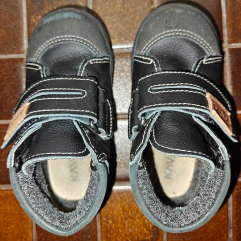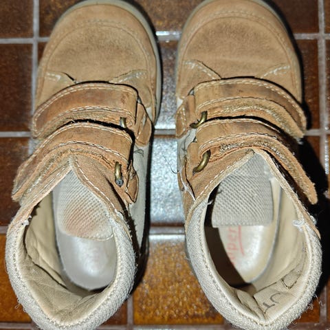 yksi leveä tarra kengässä, sopii hyvin kun lapsi alkaa oppimaan itse pukemista ja riisumista. sisämitta noin 15,5cm. kengistä purkautunut ommel sisäpuolelta (kts. kuva), muuten hyväkuntoiset