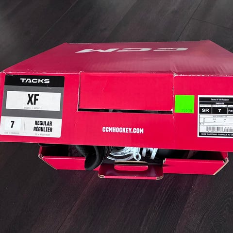 Vajaan kauden käytössä olleet CCM Tacks XF jääkiekkoluistimet, koko 43. Kakkosmalli heti pron jälkeen. Takaläppien kiinnitys vahvistettu niiteillä. Kulumaa on, mutta täysin ehjät luistimet. Skate size 8. Fitti regular.