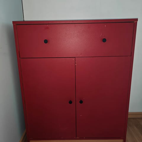 Vihreä / vaaleanpunainen hyväkuntoinen puinen lipasto.