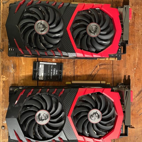 MSI:n GTX 1080 ti Aero näytönohjain, 11GB Vrammia, sopii niin pelaamiseen edelleen varsin hyvin kuin myös aloittelevan AI hommiin kuten Stable diffusion tai LLM mallit. vaikka openclaw käyttöön. Blower tyypin jäähy toimii erityisen hyvin ahtaassa kopassa tai useamman näytönohjaimen vieressa sillä se työntää kuuman ilman ulos kopasta eikä jätä sitä pyörimään kopan sisälle.