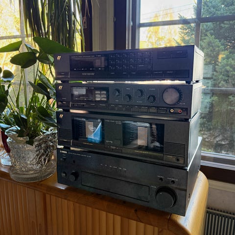 Harvinainen ja hieno hifi laite teline. 4 hyllyä joista 2 keskimmäistä saa liikuteltua. Aitoa massiivi koivua Voin lähettää, mutta tulee kalliiksi koska paketti on suuri. Todella harvinainen HIFI teline.