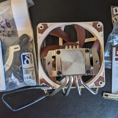 Noctuan käyttämätön jäähdytin DX-4677 kannalle + NF-A15 lisätuuletin, pitäisi netin mukaan sopia myös AMD:n threadripperille kun pyytää noctualta ilmaiseksi kiinnikkeet.