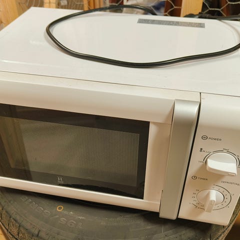 Pyörivällä alustalla oleva perus mikroaaltouuni. Nouto.