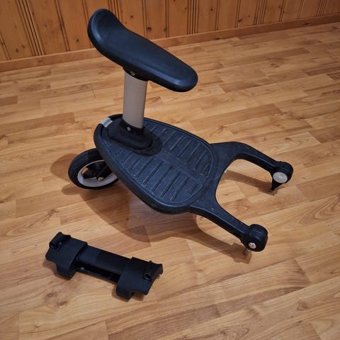Myydään vähälle käytölle jäänyt bumprider seisomalauta, jossa istuin. Universaali kiinnitys, sopii lähes kaikkiin rattaisiin.