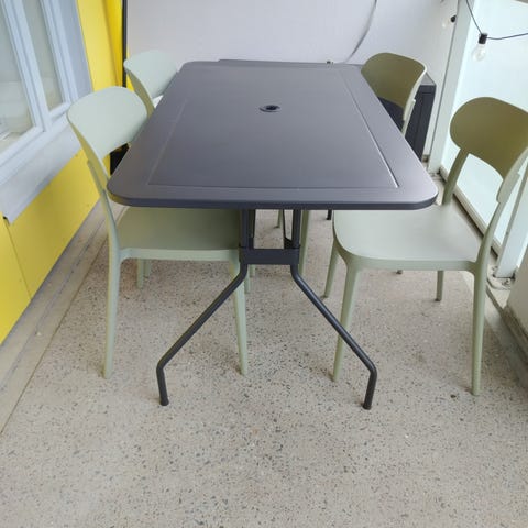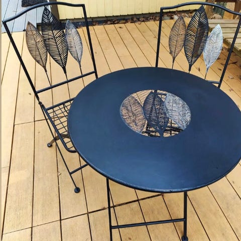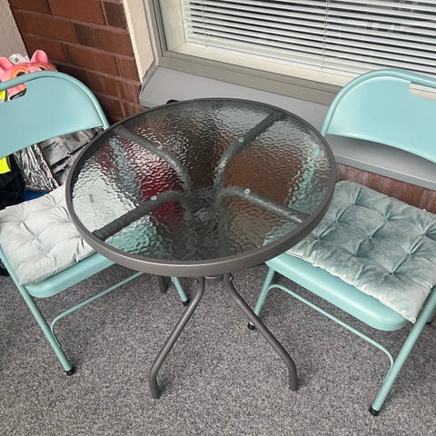 Metallinen parvekesetti, pöytä ja 2 tuolia